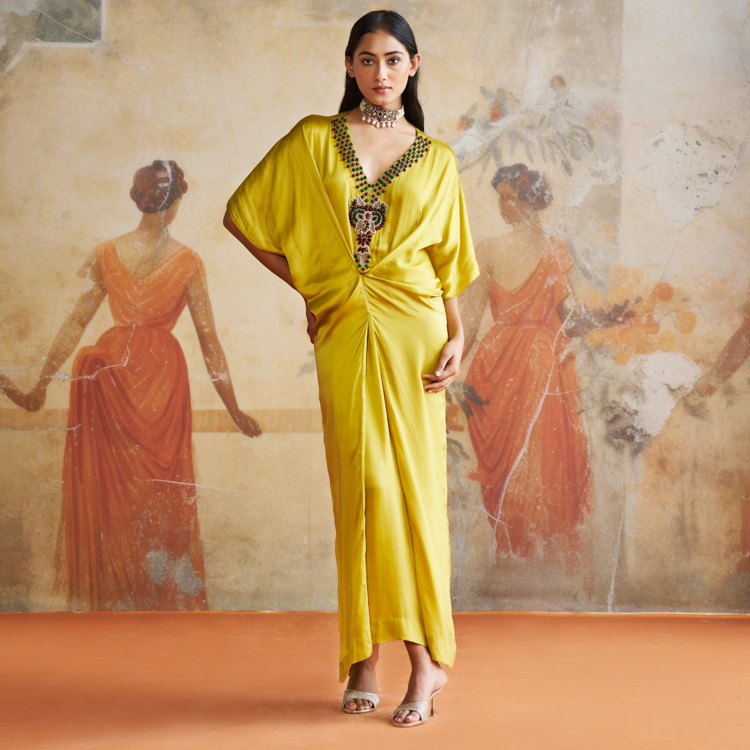 Tangerine jeweled kaftan