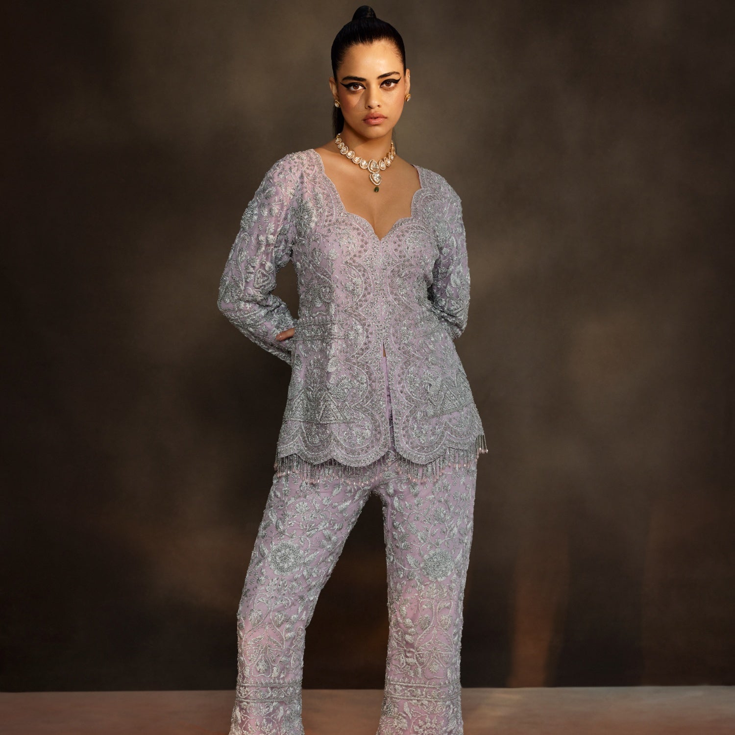 Jeweled shirt co-ord set.